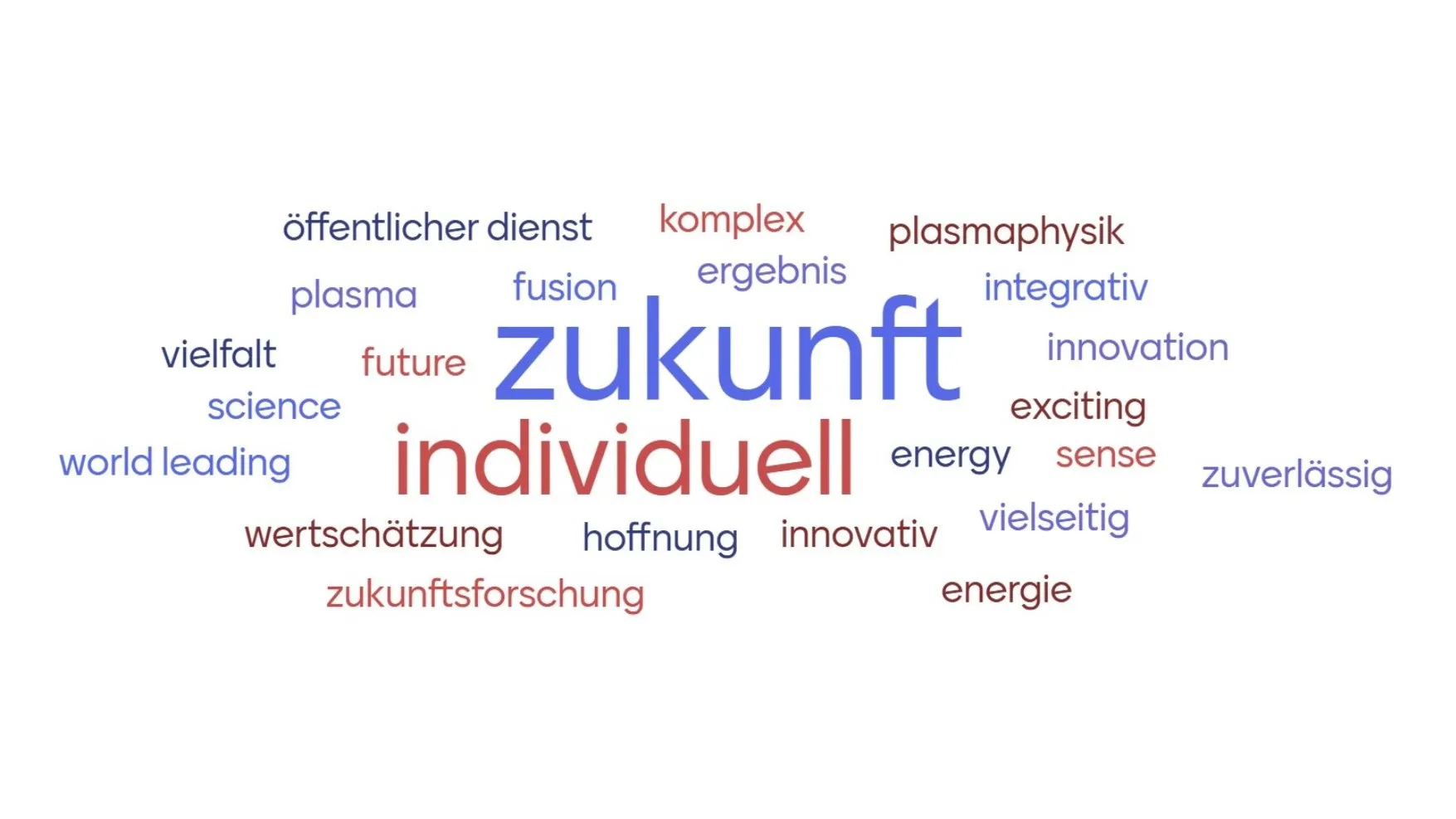 Spontane Beschreibungen unserer Mitarbeitenden haben authentische Wortwolken geschaffen, die die Werte und Kultur des IPP eindrucksvoll widerspiegeln.